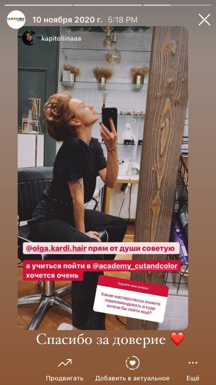творческий партнер GHD призёр чемпионата РФ по парикмахерскому искусству, окончила курсы Make-up Artist Yves Saint Laurent Paris, курсы в Академии Vidal Sassoon London. Автор брашинг-курсов.